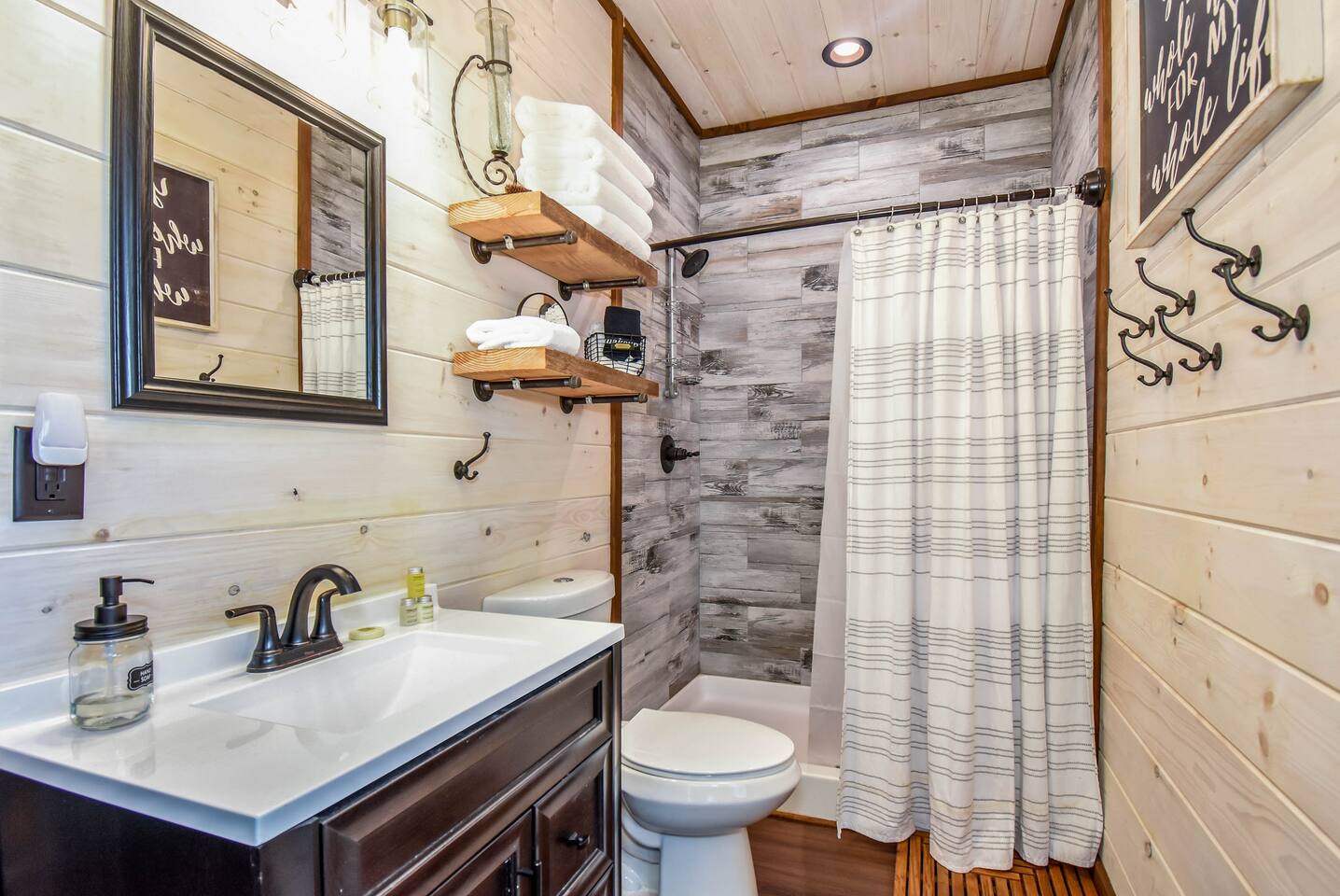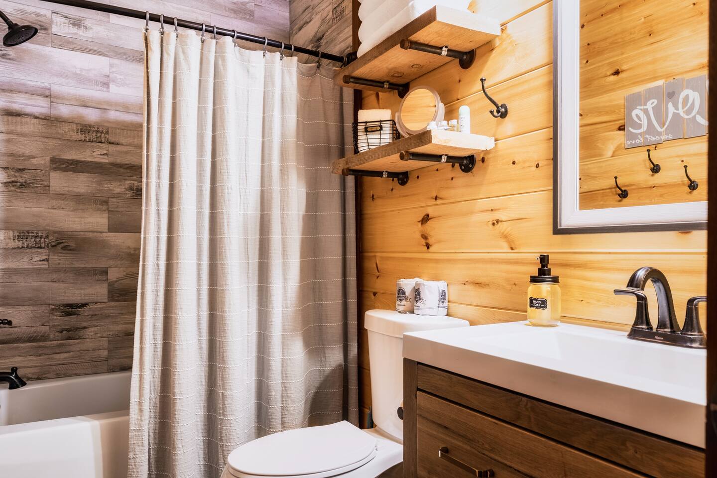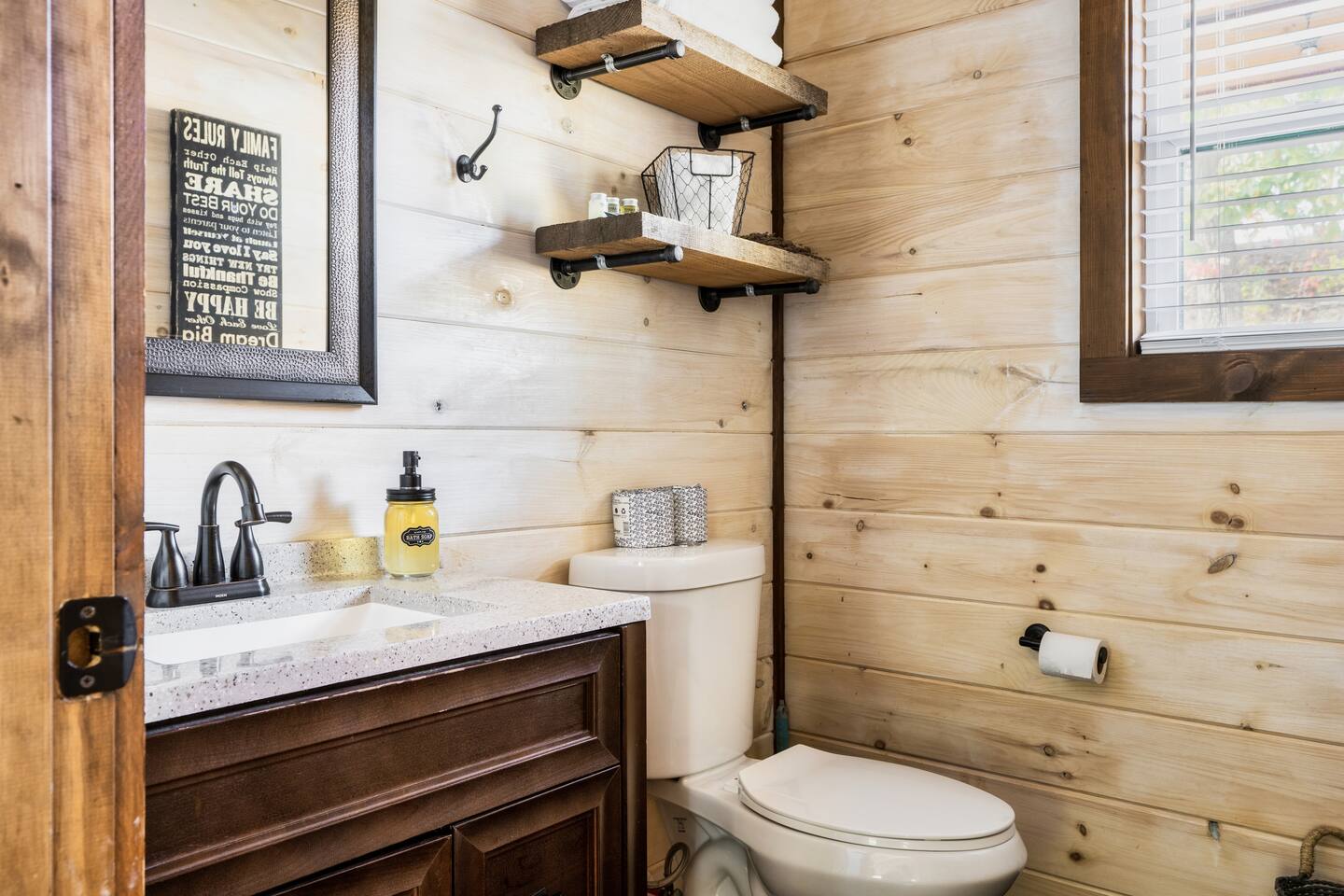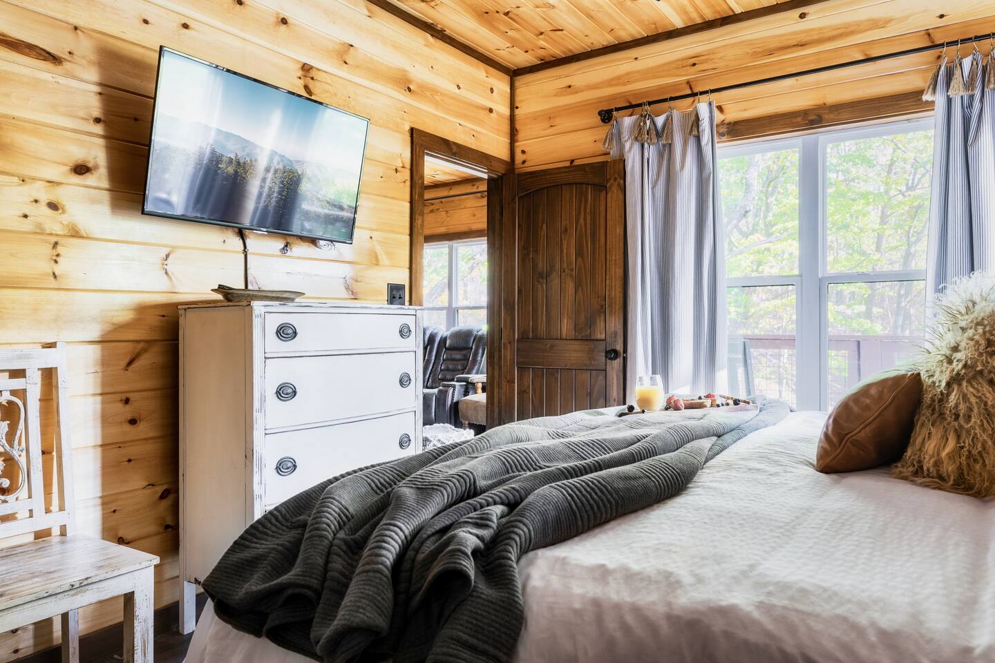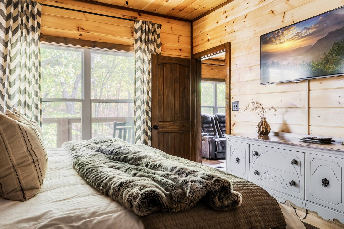 ** LIVING SPACE** Upon entering the cabin, you are greeted by a warm and inviting atmosphere. The interior is tastefully decorated with a perfect blend of modern comfort and rustic charm. The open concept living space features large windows allowing natural light to fill the room. Guests can relax and enjoy the luxurious reclaimed wood furnishings from Pottery Barn, West Elm, Restoration Hardware, Four Hands, and more! The space is complemented with a stone fireplace, creating a peaceful ambiance perfect for family gatherings. **BED & BATHS** This beautiful cabin offers 3 master king suites and a game/bunk room with 2 sets of twin over double bunk beds. Each master suites are thoughtfully designed to ensure a restful night's sleep. Soft linens and comfortable furnishings create a peaceful sanctuary for both adults and children. We accommodate up to 12 guests, with a max of 8 adults. All 3 suites include the following amenities. - king size bed with comfortable mattress and luxurious hotel quality linen - Smart 4k UHD HDR TV - Ceiling fan - Nightstand with alarm clock and USB ports - Private attached bath equipped with shower gel and shampoo ** HOT TUB** For moments of relaxation, step outside onto the expansive deck where you'll find a private hot tub. Immerse yourself in the warm, bubbling water while surrounded by the sounds of nature and the clean and crisp mountain air – a perfect way to unwind after a day of exploring the nearby hiking trails or enjoying the attractions of the Smoky Mountains. ** GAME/FAMILY ROOM ** This room is perfect for kids of all ages with numerous games and activities! - 55” Smart 4K UHD HDR TV - Pool Table - Arcade with 60 vintage games including PAC-Man, Donkey Kong, Galaga Centipede & 1942 - Board & Card Games ☆☆ PARKING ☆☆ Caution - Steep Driveway. The driveway is steep, but cars of all makes and models can be accommodated. We have parked everything from a small coupe to a large moving truck in the driveway without issue. 2-3 vehicles can park in the driveway. Additional parking for 1-2 vehicles is available in the level cul-de-sac at the road. Please don't block the road or neighboring driveways. ☆☆ OUTDOORS ☆☆ - Sit back and relax in one of the rocking chairs overlooking the forest below. - With almost a full acre, there’s plenty of room to explore. - Take a nap on the outdoor hanging bed! - Soak it up in the Hot Tub! - Reminisce and tell stories around the fire pit! - Play yard games like Giant Jenga or have a cornhole tournament! ☆☆ AMENITIES ☆☆ Our cleaning team provides startup supplies which includes hand soap, body wash, shampoo, conditioner, trash bags, paper towels, dish washer soap and toilet papers. Depending on the length of your trip, you may need to purchase additional items if the initial supply runs out. ☆☆ CLEANING FEE ☆☆ The only fee we charge is a cleaning fee. This fee goes directly to the family that cleans the property between each stay and is designed to be a Fair Living Wage. Between each stay the property is thoroughly cleaned and sanitized, and all towels and linens are replaced with fresh clean towels/linens that have been freshly laundered. ☆☆ WINTER ACCESS ☆☆ While it's very rare, during winter storm conditions 4WD and/or snow chains may be necessary to access the property. All roads leading to the property are paved. ☆☆ HIGH SPEED INTERNET WIFI ☆☆ High speed internet Wi-Fi is offered which supports multiple streaming devices. But because of the mountain region, sometimes there can be outages and we do not guarantee internet would be supported in such unfortunate circumstances. We are not responsible for internet outages or other conditions which are out of our control.